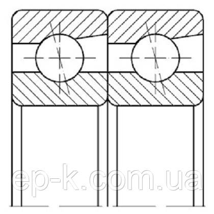 Підшипники кулькові радіально-упірні здвоєні, зовнішні кільця звернені один до одного різнім'яними торцями — схема «T»